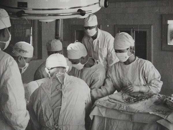 1955 我院首例手术。跟骨结核病人,在局部麻醉下施行病灶根除手术。