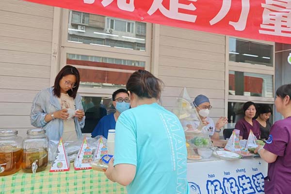 5月20日,院内举办了“第四届减脂增肌挑战赛”启动仪式暨体重管理游园市集活动,活动现场设立减脂轻食区、身体诊断区、中医辨证区、活力运动区四个区域。通过减脂轻食餐盒快速了解食物热量,营养金字塔轻松学会食物选择与搭配,体成分分析获取自己的身体“画像”,九种体质减肥茶和体质辨证帮助了解中医减脂方案,不同的运动带练倡导运动与饮食并重的健康理念,趣味互动传递了“吃动平衡”的理念。