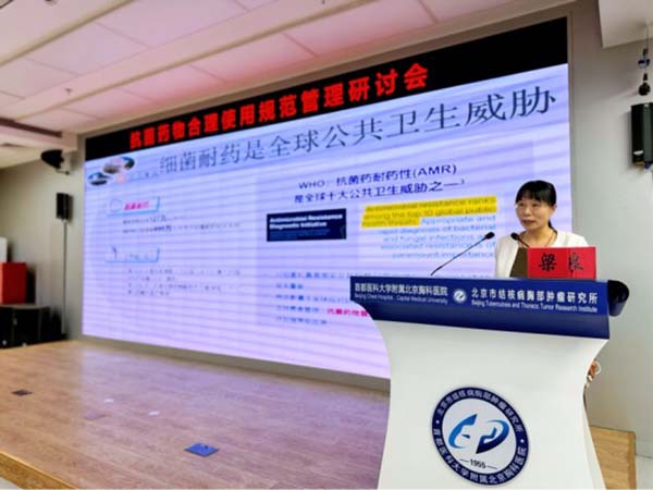 我院呼吸与危重症医学科主任叶寰结合前沿理念与实践经验,分享了碳青霉烯耐药革兰氏阴性杆菌的耐药机制和相关抗感染前沿药物及治疗策略,对我院未来严格掌握碳青霉烯类抗菌药物的适应症、避免滥用有指导意义。检验科主任赵艳分享了微生物实验室的检测要点,就病原体检测在呼吸道疾病诊断、治疗和防控中的基础性和关键性的作用进行了阐述,为今后药学、检验、院感等各科室协作加强抗菌药物管理提供了病原学依据。来自北京医院药学部副主任药师粱良结合北京医院的工作实际,讲述了北京医院在抗菌药物管理中的理论与实践,同时就集采背景下的抗菌药物临床应用与参会人员展开热烈的讨论和交流。我院药学部副主任药师刘硕带来了耐药细菌与结核混合感染治疗方案的优化,结合我院工作实际详述了不同时间维度下人体、细菌、抗菌药物之间的相互关系,为耐药菌与结核混合感染的治疗提供了药师思路。