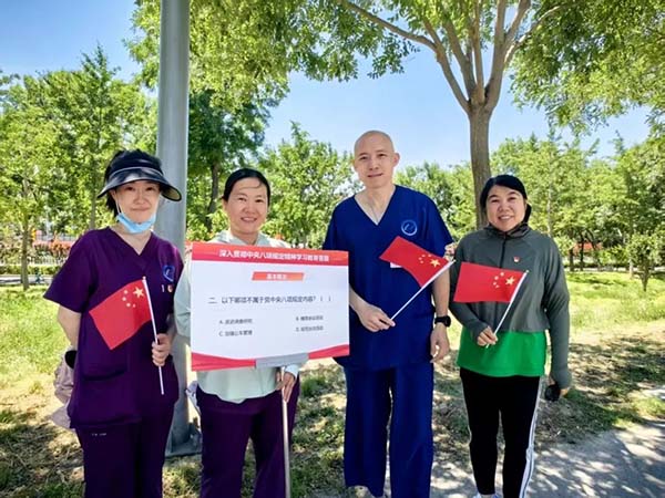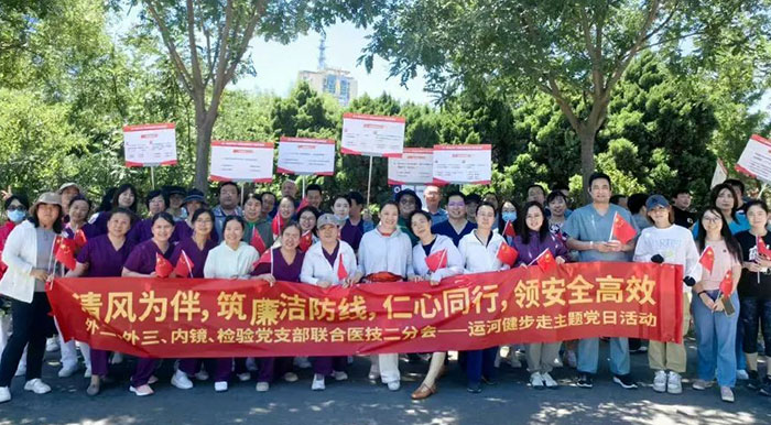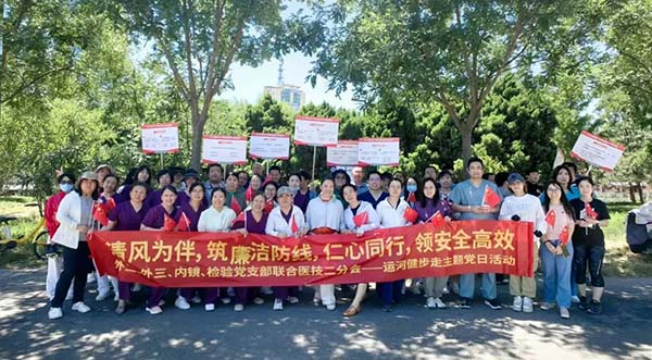 为深化中央八项规定精神学习,推动工作作风转变,践行健康生活理念,2025年6月4日,外二党支部、外三党支部、内镜党支部、检验党支部联合医技二分会,在温榆河畔开展“清风为伴筑廉洁防线 仁心同行领安全高效”健步走主题党日活动,以“健步+答题”的创新形式,让廉洁教育与医疗行业同频共振,推动中央八项规定精神入脑入心。