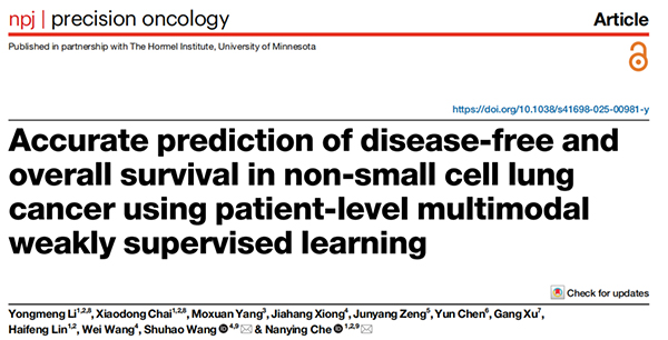 论文信息:Li, Y., Chai, X., Yang, M. et al. Accurate prediction of disease-free and overall survival in non-small cell lung cancer using patient-level multimodal weakly supervised learning. npj Precis. Onc. 9, 197 (2025). https://doi.org/10.1038/s41698-025-00981-y