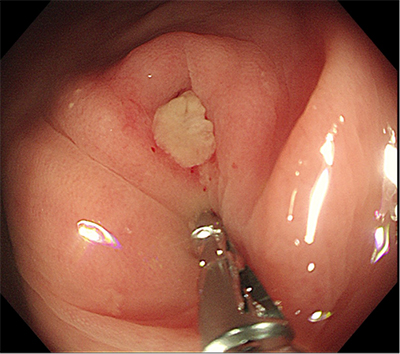 图注:术前,患者阑尾开口可见脓性分泌物附着