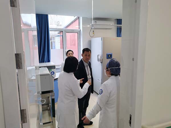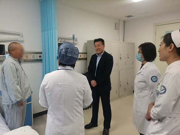 我院党委副书记、院所长李晓北,党委委员、副院所长李亮及项目PI初乃惠教授对受试者进行了慰问,并检查了研究型病房的建设工作。从病房的设施配备到人员的专业素养,从实验流程的规范性到数据记录的准确性,无一遗漏,确保研究型病房能够为临床试验提供最优质、最可靠的环境和条件。