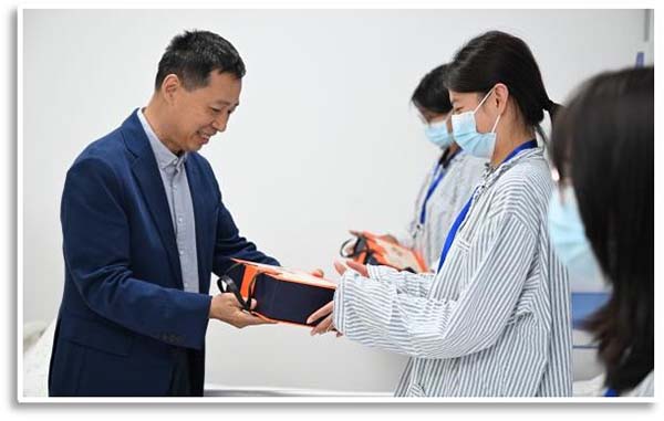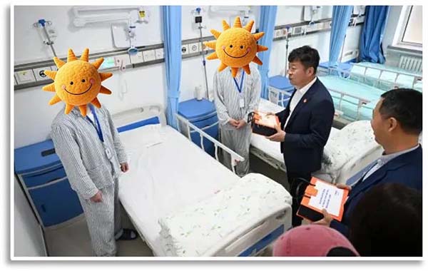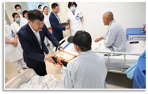 5月14日,我院党委书记、伦理委员会主席潘军华与党委委员、副院长李亮为研究病房的临床试验志愿者送上精心准备的礼物和暖心的手写祝福,感谢并致敬他们对新药研发和医学进步贡献的力量,机构办兼研究型病房主任高静韬详细介绍了临床试验志愿者参研信息,两位领导关切地询问志愿者在院期间的生活情况。