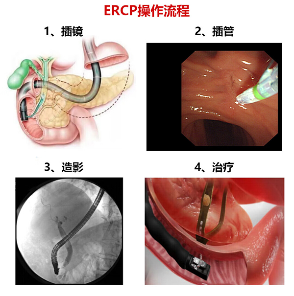 它是一种结合了内镜技术和X线透视技术的微创诊疗方法。医生将十二指肠镜(一种特殊的内镜)经口插入,到达十二指肠降段,找到胆总管和胰管在肠道的共同开口——十二指肠乳头,然后插入各种导管、导丝及器械进入胆管或胰管进行治疗。