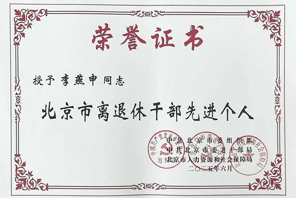 喜报 | 李燕申同志荣获“北京市离退休干部先进个人”荣誉称号