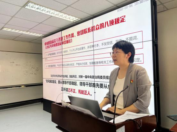 为持续强化党员纪律意识与作风建设,推动中央八项规定精神在医院各项工作中落地生根,2025年6月24日,北京胸科医院党委委员、总会计师吴倩同志为外二党支部、经济管理党支部、心脏中心党支部全体党员组织开展了一场主题鲜明、内容深刻的专题党课学习活动,旨在引导全体党员深刻领会中央八项规定精神实质,以更高标准、更严要求规范自身行为,为医院高质量发展提供坚强的纪律保障和思想动力。