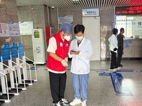 2025年6月16日,北京胸科医院门诊二部大厅迎来两位特殊的“红马甲”——来自通州区金敬聪志愿服务工作室的首批院外志愿者。标志着我院精心筹备的院外志愿服务项目正式破冰启航,为患者就医之路增添温暖力量。