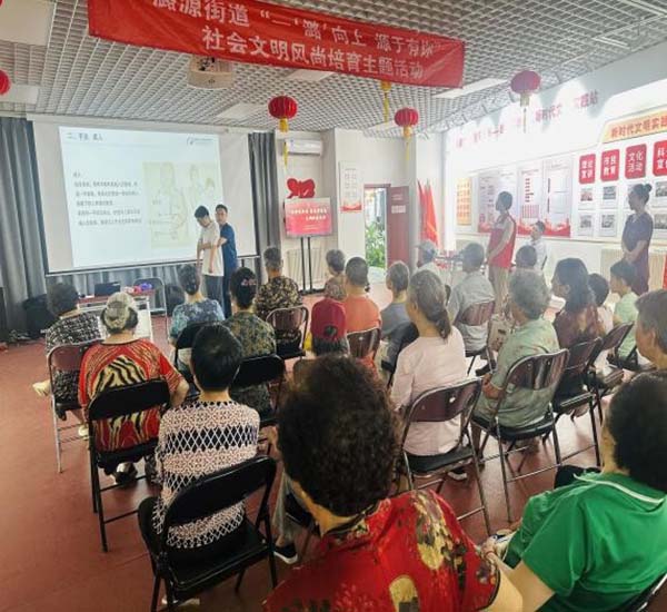 活动现场,医护人员围绕“老年人居家健康管理”主题进行了专题讲座,结合老年人常见慢性病特点,从饮食调理、作息安排、日常护理等方面提供了科学建议,帮助老年居民及家属掌握居家照护的关键要点。医护人员还在现场演示并讲解了海姆立克急救法的操作步骤和注意事项,通过模拟场景互动,让居民直观理解这一挽救生命的急救技能。