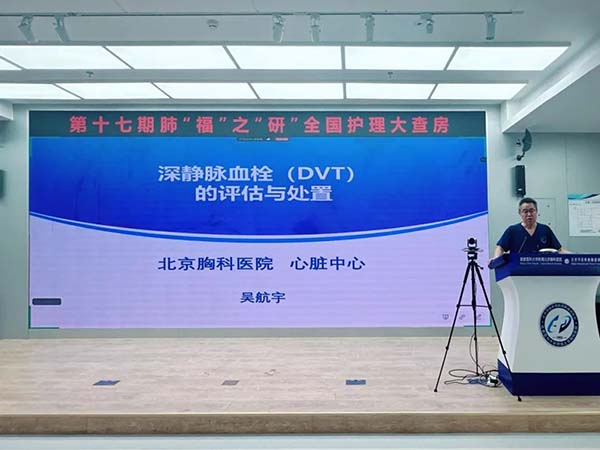 针对此次病例中涉及的医护合作性问题,由北京胸科医院心脏中心主治医师吴航宇进行《下肢深静脉血栓的评估与处置要点》专题讲座,结合临床实际案例从发病机制、临床表现、诊断方法、预防措施及治疗要点展开生动且详细的讲解,为护理同仁提供了坚实理论支撑。