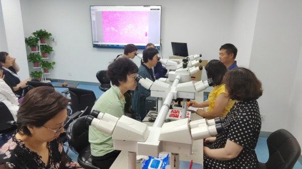 学习班还精心安排了京疆病理感染&胸部疾病联合读片培训会,由主委专家带队对4例疑难病例进行多学科研讨。学员们通过多头显微镜下的疑难病理切片读片,与专家进行了零距离、深层次的交流探讨,现场气氛热烈。