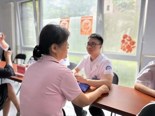 活动现场,各服务区域秩序井然,居民们带着健康需求有序参与,医护人员的耐心服务与专业解答,让秋日的居委会充满温暖。在义诊区我院三大领域专家精准对接居民需求:骨科严广璇针对肌筋膜炎、关节炎、腰椎间盘突出等骨科常见疾病,细致问诊、查体、查看影像报告,为居民制定个性化诊疗建议;乳腺及甲状腺专科医生赵双涛凭借丰富经验,为居民开展针对性筛查,科普结节良恶性鉴别知识,缓解大家对乳腺、甲状腺健康的担忧;中医科李波则通过 “望闻问切”为居民把脉辨证,讲解情绪对身体的影响,结合体质给出中药调理与日常养生方案,让传统中医智慧惠及基层百姓。