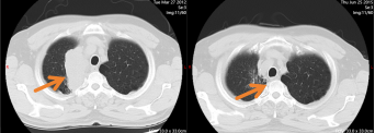 图1 第一次诊断肺癌,同步放化疗后右肺肿块消失