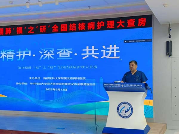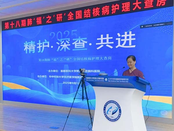 护理,是医疗事业的坚实基石,更是照进患者生命的一束光。为进一步深化优质护理服务,促进多学科交叉融合,分享前沿护理技术与理念,首都医科大学附属北京胸科医院于2025年9月12日举办第十八期肺“福”之“研”——全国结核病护理大查房活动。本次查房病例由北京胸科医院和华中科技大学同济医学院附属武汉市金银潭医院提供,活动由北京胸科医院护理部主任王秀军主持。