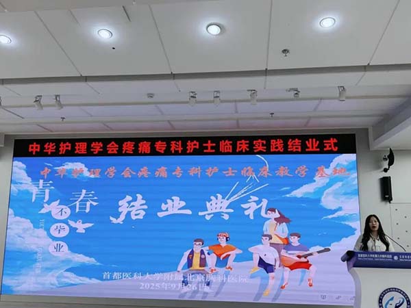 金秋九月,丹桂飘香。首都医科大学附属北京胸科医院首届中华护理学会疼痛专科护士毕业典礼于9月26日举行。来自全国不同省市的4名学员顺利通过理论考核、操作考核及个案答辩,圆满完成了为期4周的临床实践学习,顺利结业。北京胸科医院感染科副护士长朱云莲主持结业典礼。