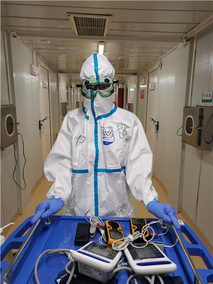 现在我已经克服了种种困难,做到得心应手。记得刚开始工作的时候,一位同事问我:“在隔离病房,要近距离接触疑似或是确诊病人,你怕吗?”我坦然一笑答道:“既然选择了这身白衣,穿上最美丽的衣服,投入到工作当中,我就忘记了畏惧!”