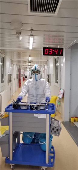 3月18日,我第一次进隔离区上夜班,下午4点早早到岗,收治几名疑似患者,这是我工作以来上的最长的一个夜班,除了测量生命体征、抽血、采集咽拭子,还要向每位疑似患者做入院宣教、填写调查问卷、订餐等,更要安抚他们焦虑的情绪。