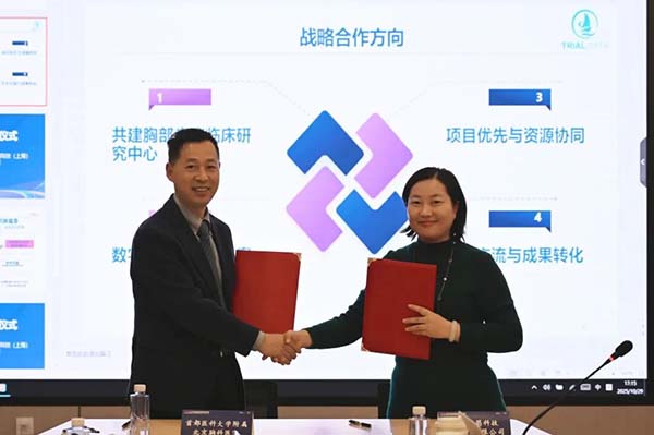 在全体参会人员的共同见证下,北京胸科医院分别与璞睿生命科技有限公司、缔脉生物医药科技(上海)有限公司、创达医药科技(上海)有限公司、影研医疗科技(上海)有限公司和杭州泰格医药科技股份有限公司五家第三方服务平台签署了战略合作备忘录。战略合作方向覆盖多元,包括共建高标准临床研究体系,打造卓越临床试验中心;共同培养顶尖的临床研究团队和人才;构建高质量的影像评估行业典范;数智化赋能临床试验全周期全流程,打造适应未来趋势的临床研究体系;推动项目优先与资源协同。