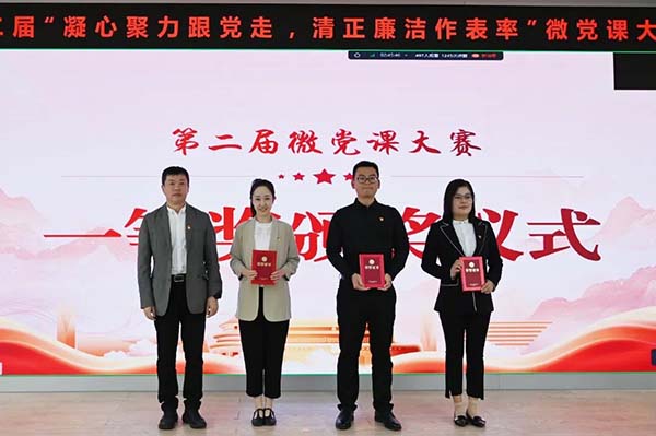 党委书记潘军华同志作总结发言,他首先对各位参赛选手的认真准备和精彩表现给予了高度肯定。他表示,微党课是基层党员教育的重要载体,此次比赛的选手们既有“60后”的老将,也有“00后”的青春力量,党课内容多元、风格迥异、亮点突出,将“大道理”与“小案例”相结合,既展现了鲜亮的红色底色,又迸发出了鲜活的时代气息,既讲的实、也讲的透,让党员干部学有所获的同时,也充分发挥了凝聚思想共识、激发行动力量的重要作用。