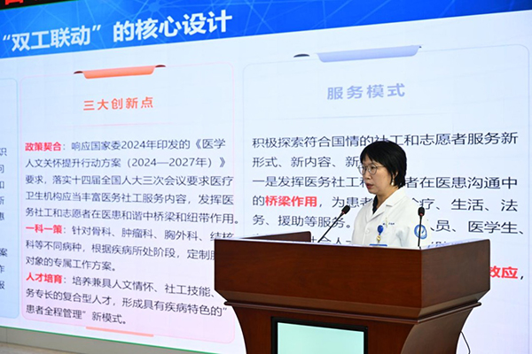 据悉,大赛启动后收到77个科室申报项目,经初评后19个项目入围竞演。竞演中,各团队通过情景模拟、视频等形式展示创新成果,涵盖出入院“秒办”、心理照护、AI科普等务实举措。最终,药学部“就医取药全流程优化”、病理科“病理直通车”、肿瘤三科“诊中全流程宣教”分获三大主题一等奖。