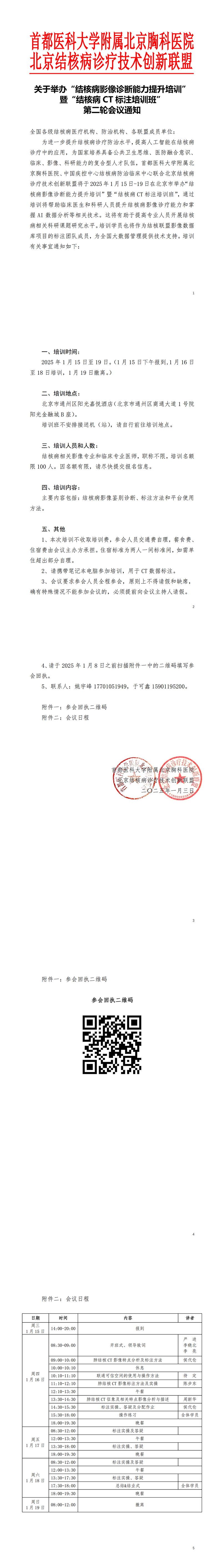 关于“结核病影像诊断能力提升培训”暨“结核病CT标注培训班”第二轮会议通知