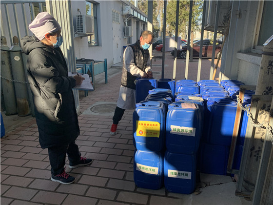 1月30日大年初六,受物流限制,申购的消毒液无法送达医院。王建国同志亲自赶往现场,积极联系市内物流公司进行运送。支部内其他同志提前到达单位,将满满一货车25升/桶的消毒液卸车并运送至库房,转运工作由上午8点持续到下午5点。
