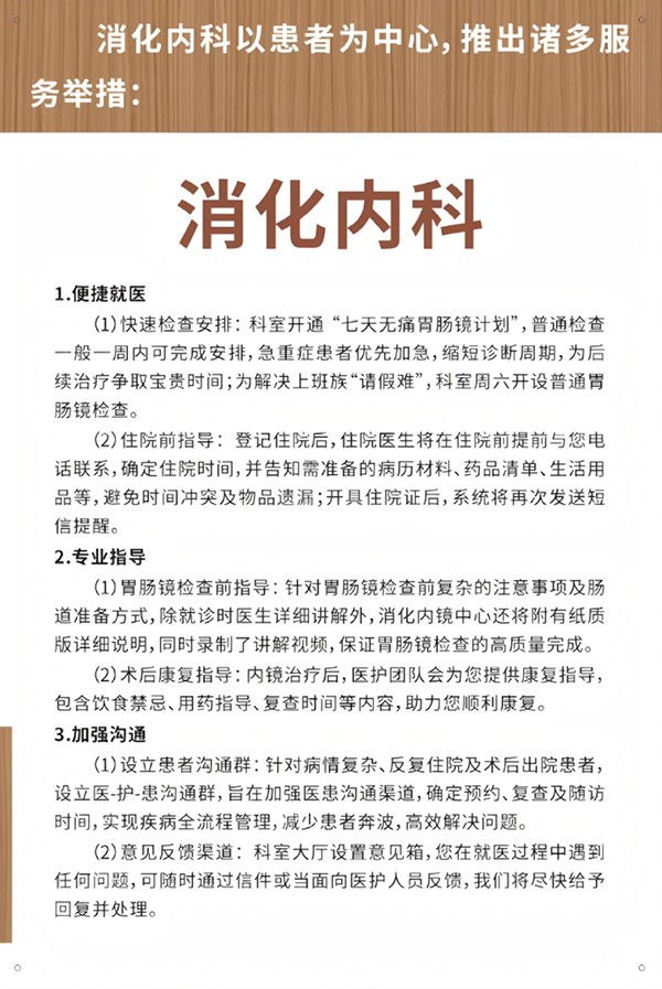 消化内科设有消化内科病房、消化内镜中心、消化内科门诊、消化实验室。科研带动临床,积极研发胸部肿瘤早期诊断、转移及预后标志物,通过早诊标志物筛查确定高危患者,可进行影像学及内镜检查。对于已确诊患者通过转移、预后等标志物检测可指导患者综合性治疗。结合胸科医院的特色优势,开展肠道溃疡的鉴别诊断,有效解决肠道溃疡性病变的诊断难点及治疗痛点。