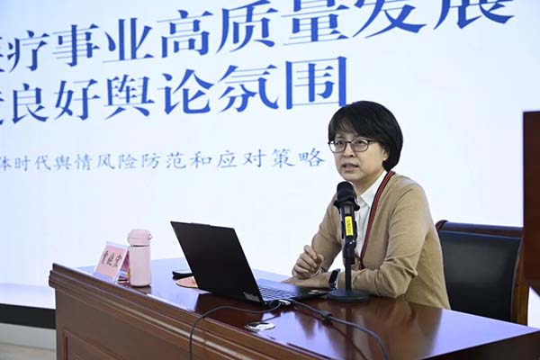 贾晓宏同志以“用互联网思维指导舆情处置”为切入点,结合具体案例深入浅出地为与会人员讲解了当下网络空间的发展现状,强调了转变思维模式对做好意识形态阵地管理的重要作用。随后,她结合卫生健康领域具有代表性的舆情应对案例,阐述了如何有效规避舆情风险、科学处置舆情事件等。她指出,医院要建立健全舆情监测机制、明确舆情上报流程、关注多渠道信息源,及时发现潜在的舆情风险,做到早发现、早处置、早化解,同时用好各种媒体平台,积极传播正能量,用正面信息占领舆论高地。与会人员纷纷表示,贾晓宏同志的讲课主题鲜明、风趣幽默,与工作实际联系紧密,通过学习,大家对舆情应对与防范意识形态风险有了更深刻的认识和理解,为今后更好地开展相关工作奠定了坚实基础。