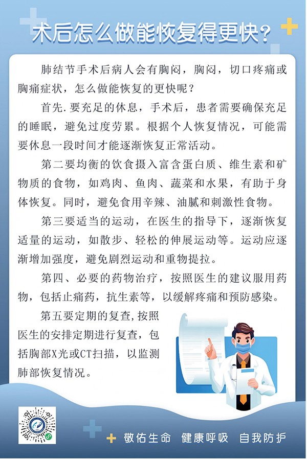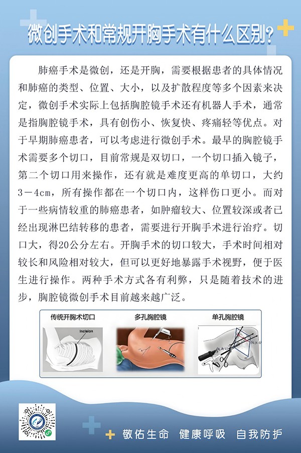 单孔胸腔镜手术可以明显缩短患者的康复时间。
