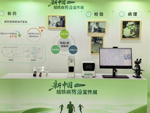 相较于历史展区的厚重温情,“科创今朝”展区聚焦新时代我国结核病防治领域的硬核突破,展现科技从“粗放防控”到“精准施治”、从“经验判断”到“科技支撑”的深刻变革。展区通过实物、图片、视频、图文背板相结合的形式,展示了预防、诊断、治疗三大领域的跨越式进步。预防层面,从传统卡介苗到新型mRNA结核疫苗的研发迭代,预防效果持续升级,筑牢人群健康屏障。诊断层面,告别单一依赖抗酸杆菌显微镜人工读片的传统模式,建立起高灵敏度分子检测、舌拭子采样、病理标本人工智能识别等多元化快速诊断体系,实现从“慢检测”到“快精准”的转变,为早发现、早治疗赢得宝贵时间。治疗层面,从早期基础抗结核药物的应用,到耐药结核病诊疗方案的持续优化,治疗疗程从24个月大幅缩短至6个月,临床治愈率从50%提升至90%以上,极大减轻了患者负担,改写了耐药结核难治的历史。