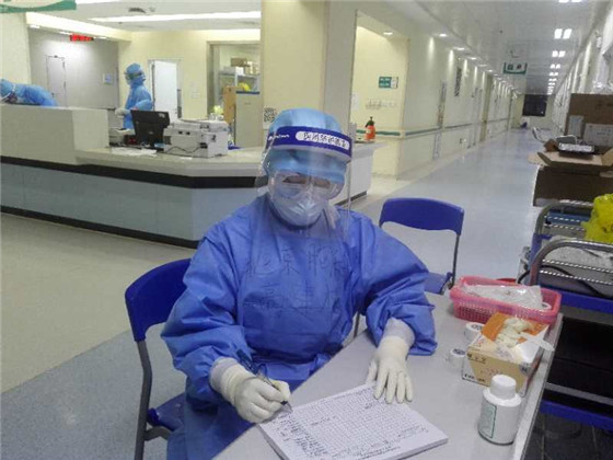 今天是我援鄂的第十九天,夜班,我要护理的是一位需要插管上呼吸机的患者,看着他身上的各种管路,我心里特别不是滋味。即便他现在是镇静的状态,我依然在他耳边告诉他:“叔叔,今天是我的班,您一定要加油啊,一定要战胜病魔,快点好起来。”接触这样插管上呼吸机通气的患者,风险会进一步的增大,但是我顾不上紧张和害怕,一心想着要把病人护理好,减轻他们的痛苦。