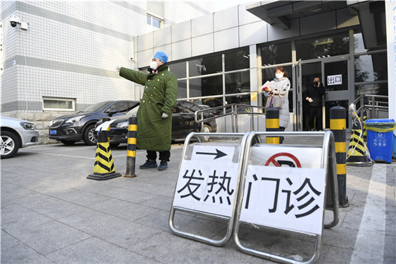 为应对疫情,确保每个进入门诊及住院部的人员都能够被检测体温,医院规整人行通道,每天派出10余人的志愿者队伍,在多个出入口引导患者及家属进行体温检测。都说“下雪不冷化雪寒”,再加上风寒效应,雪后的第一个工作日,室外温度一直维持在零下。已经在室外维持了3个小时秩序的党办的高磊同志表示,只要秩序平稳,冷点儿不怕。