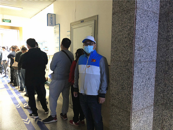 经过前期的培训和筹备,10月6日搬迁工作完成后的第一天,尽管还在国庆长假期间,学生党支部书记康铁焱同志带领支部党员周文强同志率先上岗服务。10月8日,为应对长假后入院高峰,每班次志愿者增加到6位,团委委员、规划建设办公室崔飞带领团干部分布在原门诊二部、住院部大厅、东耳房入口、东耳房与大厅连接处、西耳房入口、西耳房与大厅连接处6个点位,为患者提供从挂号到就诊全流程指引。