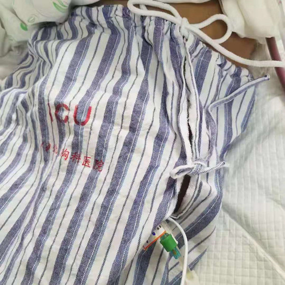 在临床护理工作中护士们发现,使用的松紧带式病员服裤子可满足一般患者日常生活需求,但对于胸外科术后的患者来说,松紧裤腰设计不仅会增加压力性损伤以及导管滑脱的风险,而且在进行皮肤护理、尿管护理和尿管固定时十分不便。因此,本着患者舒适,护士操作方便的原则,重症医学科护理团队基于病员服整体功能需求,对裤子的开口进行了改动。新型病员服将原来的松紧带换成长短可调节的系带,并在裤子侧面开口,便于胸外科术后患者检查、护理、病情观察等需要,还可以保护患者隐私。