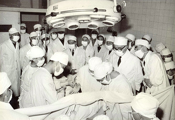 1976年至1978年是针麻手术的鼎盛期,做了约有一千多例开胸手术。一根小小的银针能做开胸手术,这让世人感到很神奇!美国、法国、比利时、老挝、越南、柬埔寨等等,很多外国来宾都前来我所参观针麻手术。在患者接受针麻手术的过程中,当柳叶刀行进在患者的皮肤和一层层肌肉组织时,在场的人们,心都紧了起来。但每每看到病人以微笑向外宾打招呼,有的患者还欠起身子与外宾握手时,提着的心这才放了下来。我们的针麻师、手术医师和接受针麻手术的患者真了不起!