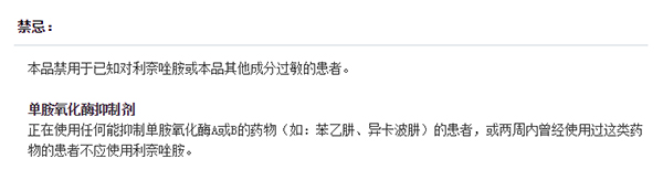 图1 利奈唑胺说明书中关于单胺氧化酶抑制剂的描述