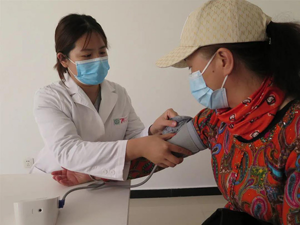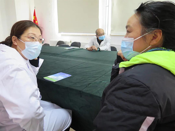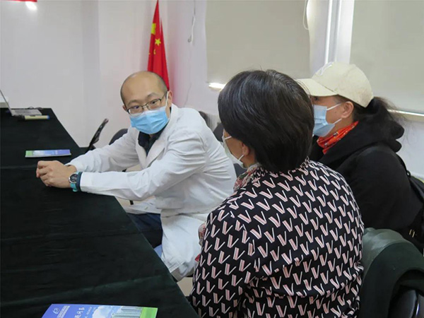 随后,结核科、肿瘤科、骨科的医生以及负责血压监测的护理人员开始进行义诊。“大夫, 我总是感觉前后胸发疼、发闷,这是心脏出问题了吗?”“我经常口干这是怎么回事呀?”“大夫,我有点胖,是不是吃的不健康呀?”“我有个肺结节,这肺结节很可怕么?”义诊现场,医疗队成员逐一给予了耐心细致地检测和解答。