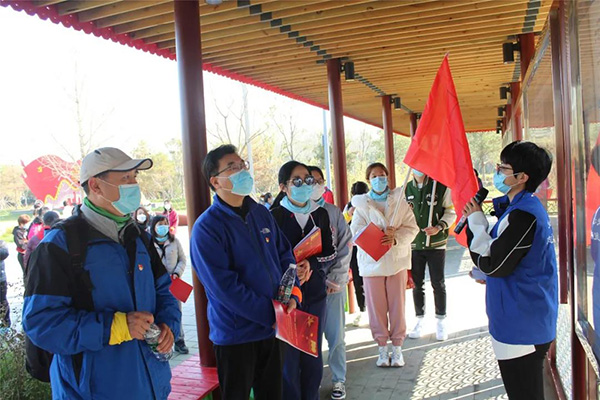 2021年10月23日秋高气爽、阳光普照,北京胸科医院综合、放疗科党支部联合心脏中心党支部、肿瘤科党支部,组织党员、团员和群众50人来到通州区潞城党建公园红色教育基地,开展了主题为“重温党史、不忘初心、牢记使命”的党日活动。工会主席王丽娟作为肿瘤科党支部的联系领导也参加了本次活动。