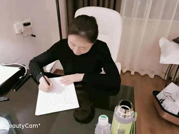 这张照片是我在写入党申请书。1月27日接到的援鄂任务,当天下午四点多从医院出发,凌晨12点多到达武汉天河机场,凌晨一点多的时候到达驻地。在接到援鄂任务通知后,看到身边很多医务人员,毫不犹豫地奔赴到前线,也看到党旗在疫情前线高高飘扬,我们每个人都非常有感触,想加入到党组织。到了驻地之后第一时间,大家自发地写了入党申请书,向党组织靠拢,发挥党员的先锋模范作用。