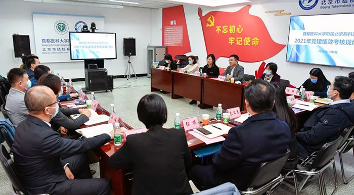 2021年12月9日上午,北京市卫生健康委党委书记钟东波带领市卫生健康委机关党委(党群处)处长姚铁男,市医院管理中心机关党委副书记、党群处处长张海鸥,市医院管理中心党建考核检查组成员一行来我院调研督导党建工作。