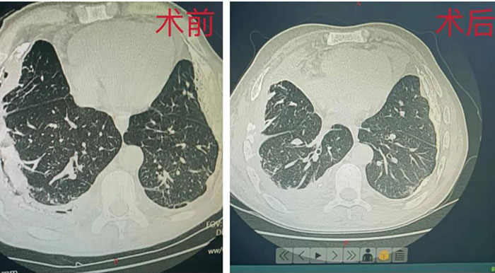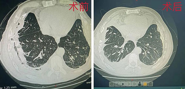 辗转多家医院,患者和家属慕名来到我院呼吸与危重症科就诊。5个月的慢性消耗导致患者贫血、低蛋白,皮肤也有轻微溃烂,体质极差。入院后患者一度出现呼吸衰竭和意识障碍,经过叶寰主任和医护人员积极抢救,患者很快转危为安,营养状况也得到初步恢复,但是包裹性脓胸和引流可能存在的继发性感染等问题还没有得到有效解决。
