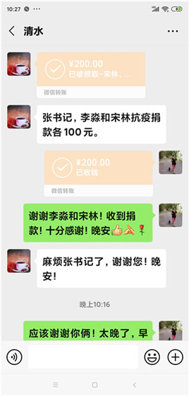 老党员程秀君为了捐款请求加我微信,福建立、李淑兰虽然微信不太熟练,也在第一时间转来了捐款。还有许多可敬的党员,在此一并致谢。