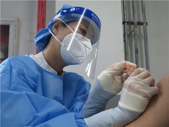同一个流程,一天重复几百遍,哪里最累?队员们给手腕和嗓子各记一功。腿“闲”下来了,但工作量“转移”到了手上。疫苗注射前要充分摇匀,局部消毒、注射、推液,一气呵成,一连串的操作下来,次数多了手腕有点吃不消。负责接种的护理人员在注射疫苗前要核对个人信息,注射后还要叮嘱每位接种者注意事项。“如果去卫生间就得把防护服脱了,既耽误时间,又浪费物资,半天时间老说话又不喝水,一会儿嗓子就哑了。”虽然看起来简单,可每天的工作都是对体力和脑力的双重考验。