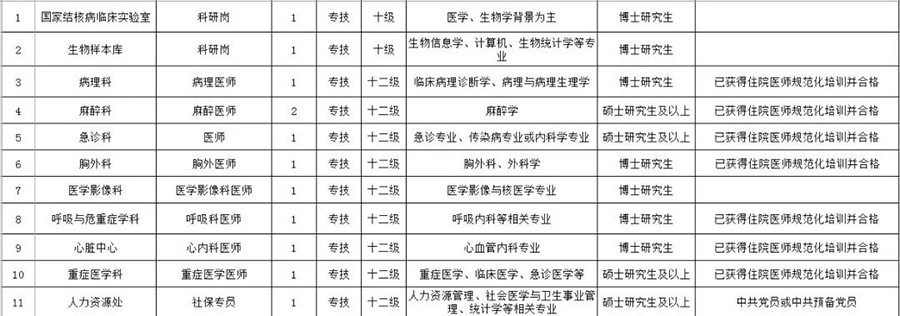 2022年首都医科大学附属北京胸科医院招聘公告