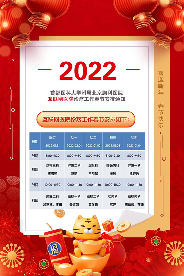 首都医科大学附属北京胸科医院互联网医院诊疗工作春节安排通知