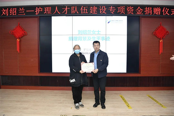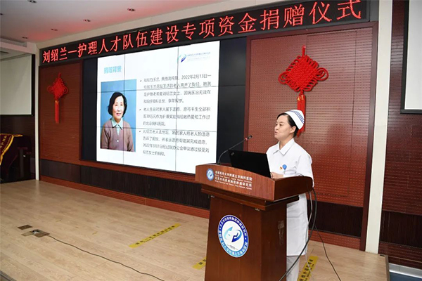北京胸科医院党委书记潘军华对刘绍兰老前辈为医院做出的贡献表示深深的怀念和敬仰,对她家人给予医院的肯定表示感谢。他说,刘绍兰老人大公无私、鞠躬尽瘁,用一生践行着对党忠诚,对医疗卫生事业负责的誓言,彰显了医者的高尚情操,更传递出胸科医院的家园情怀,这值得我们所有胸科人学习,更值得我们所有胸科人记忆。他表示,医院会用好这笔资金,拟设立“绍兰护理提灯奖”护理奖项,推动医院临床护理队伍建设、护理人才培养等工作,为医院的高质量发展贡献护理团队的智慧与力量。