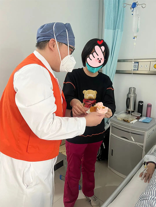 今日对于杨阿姨来说意义非凡,今天是她的生日,全体医护人员唱响生日歌为她祝福,甜美的蛋糕,温暖的烛光,杨阿姨红了眼眶:“谢谢,谢谢!你们平时给我很多照顾了,没想到你们还给我过生日,我还收到了鲜花。谢谢!谢谢!这是我度过的最难忘的生日了,你们太贴心了!”杨阿姨给自己许了愿望,这必定是她最甜美的心愿。医、护、患相握的双手,声声的祝福,衷心祝愿患者都能早日康复,快乐的迎接更加美好的明天。