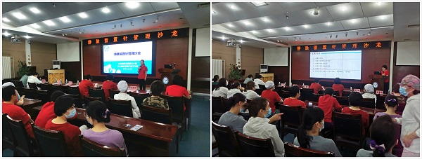 沙龙由静疗小组组长史文文主持,由胸外一科副护士长刘颖就留置针穿刺、维护及应用要点进行系统理论授课,同时邀请北京世纪坛医院护理部副主任顾怡蓉就静脉炎的预防、处理及管理策略进行专题讲授。两位专家将操作规范、最新指南与临床生动案例相结合,让临床护士印象深刻。