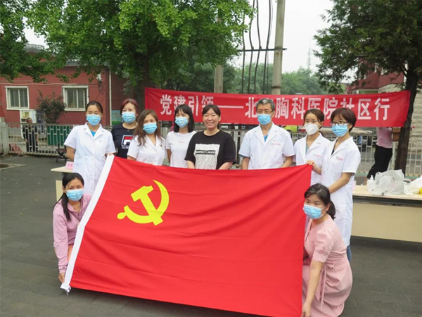 为迎接建党 100 周年,贯彻落实中组部关于开展“党旗在基层一线高高飘扬”活动的要求,2021年6月22日,由北京胸科医院6名医护人员组成的医疗队走进通州区富河园社区,为这里的居民送去了健康知识,并为他们进行了义诊。这是所党委回社区报到开展服务的具体举措,也是开展党史学习教育--“我为群众办实事”的活动之一。