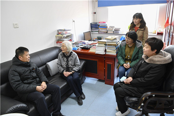 “您好,马老,我们来看看您,我们代表医院党委提前祝您春节快乐。”北京胸科医院分子生物实验室内,院领导潘军华、李艳红、王丽娟一同看望慰问了老专家马玙。院党委书记潘军华详细询问了马玙的身体情况,在得知马老耄耋之年还行动矫健、思维敏捷时,十分高兴。他说,您记录了胸科的历史,见证了胸科的发展,带领着胸科人一步一个脚印向前迈进,我们所有胸科人都应该感谢您。特别是90岁高龄还奋斗在结核病防控的一线,践行着一名党员“不忘初心、牢记使命”的理想信念,这永远是我们全体胸科人学习的榜样。他嘱托医院相关部门,要切实保证好马玙的身体健康,为她的日常工作提供好优质的保障。